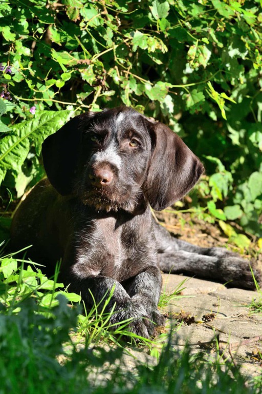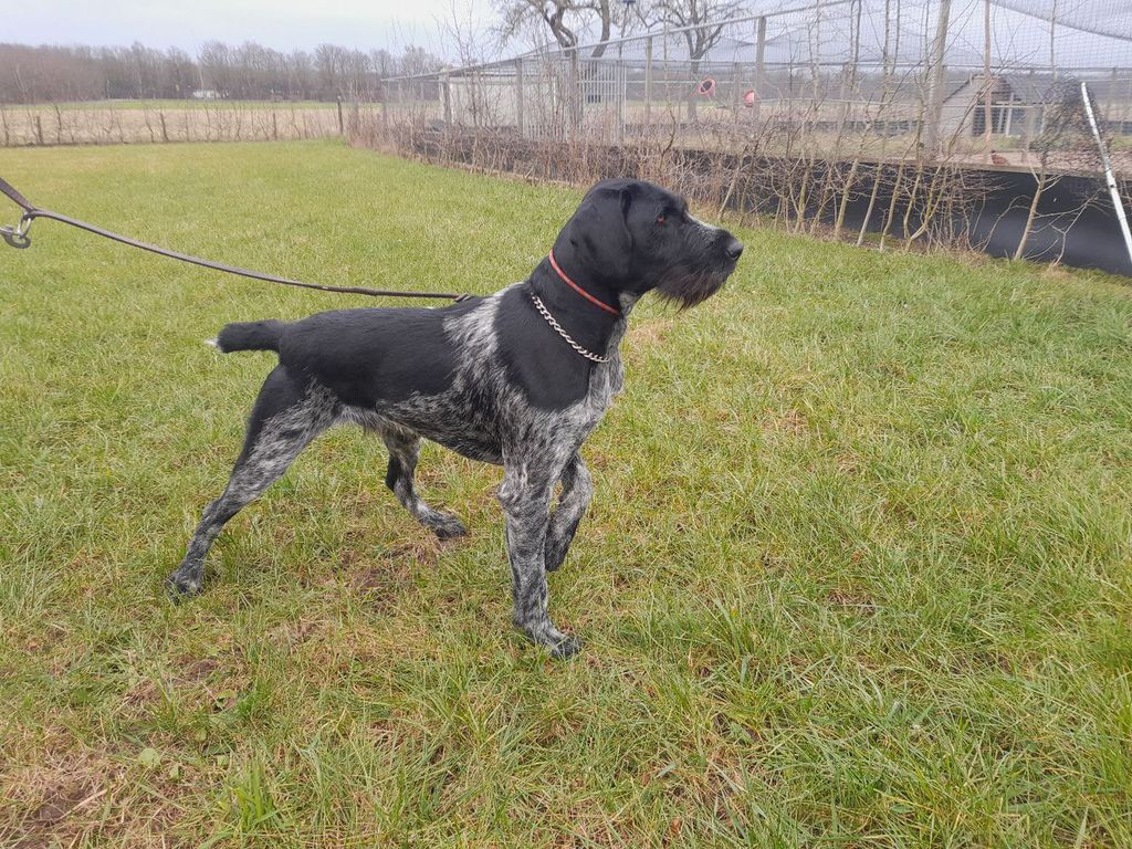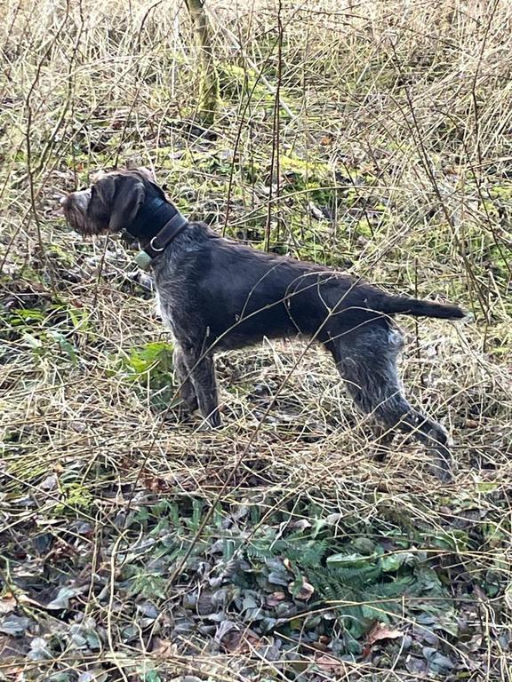 Massimo ist ein beeindruckender Ausnahmerüde. Dieser junge Deckrüde zeigt alles was einen Deutsch Drahthaar ausmacht. Jagdlich wird er hauptsächlich auf Niederwildjagden eingesetzt, wir schnallen ihn aber auch bei Schalenwildjagden, bei der Raubzeugbejagung und arbeiten mit ihm am Riemen auf der roten Fährte. Er geniesst engen Familienanschluss und passt sich sehr gut an. Seine erste und zweite Decksaison waren sehr erfolgreich, die Welpen präsentieren sich durchgängig mit einer guten Aufrichtung, schönen Köpfen mit deutlichem Stopp und sehr guter Haarqualität, die Welpen zeigen sich passioniert mit Vorwärtsdrang, sehr passioniert im Wasser. Auch seine 3. Decksaison beginnt sehr vielverversprechend. Massimo deckte bereits qualitativ hochwärtige Hündinnen mit sehr gutem, durchgezüchtetem Blut. Wir freuen uns auf seine 2025er Nachkommen.